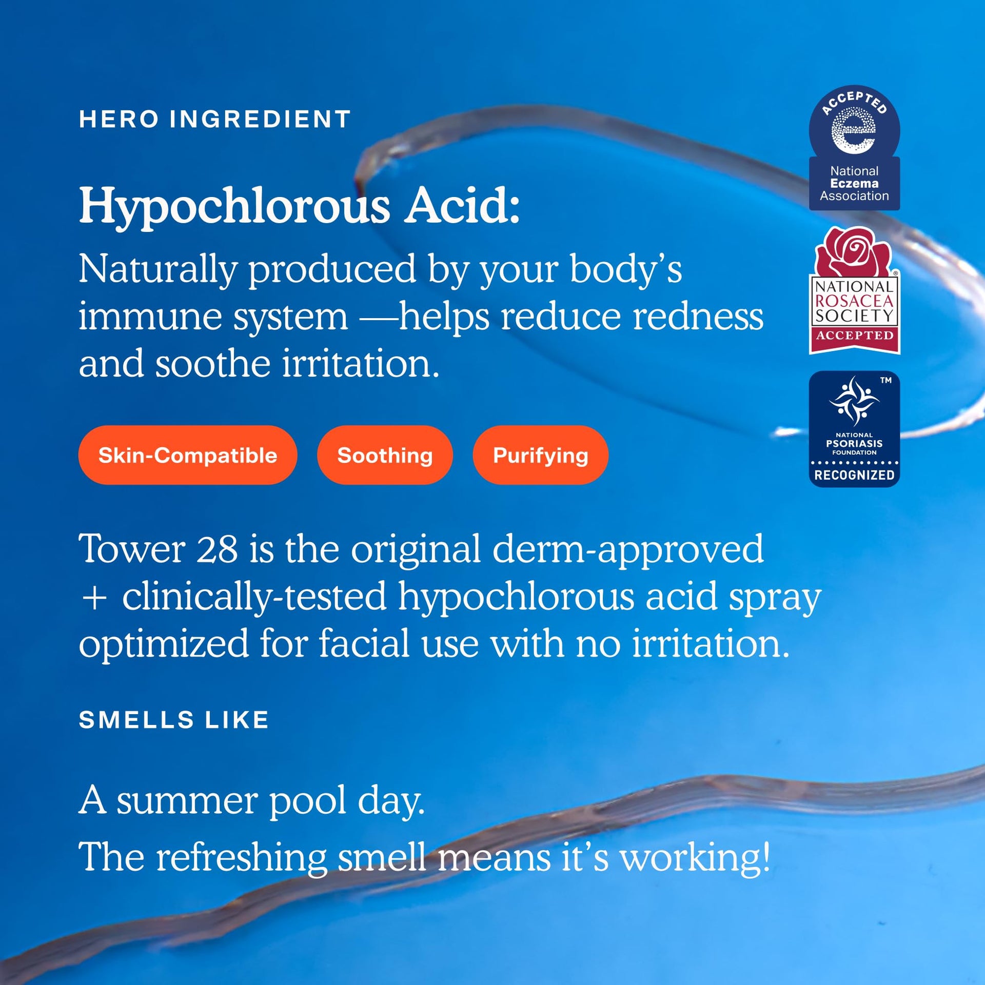 Tower 28 SOS Daily Rescue Facial Spray – Hypochlorous Acid Toner for Sensitive Skin, Redness & Breakout Relief, 4 FL Oz Full-Size Spray