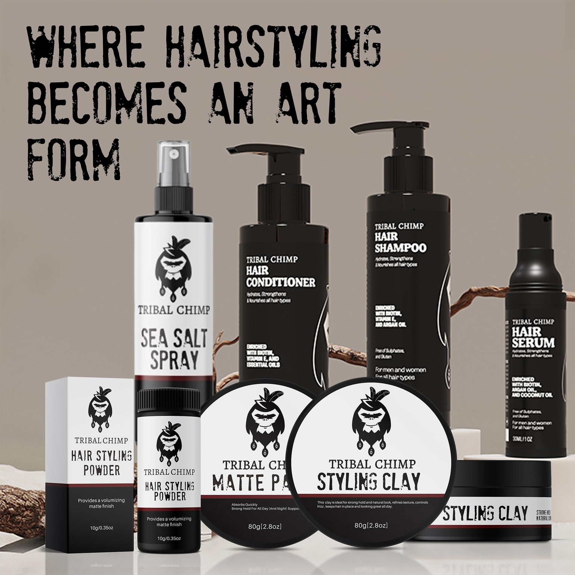 - Matte Finish & Strong Hold: Get a natural, textured look with Tribal Chimp Styling Clay. This matte clay hair product men love offers a super strong hold to keep your style locked in place all day ideal for straight, curly, thick, or colored hair without stiffness.
