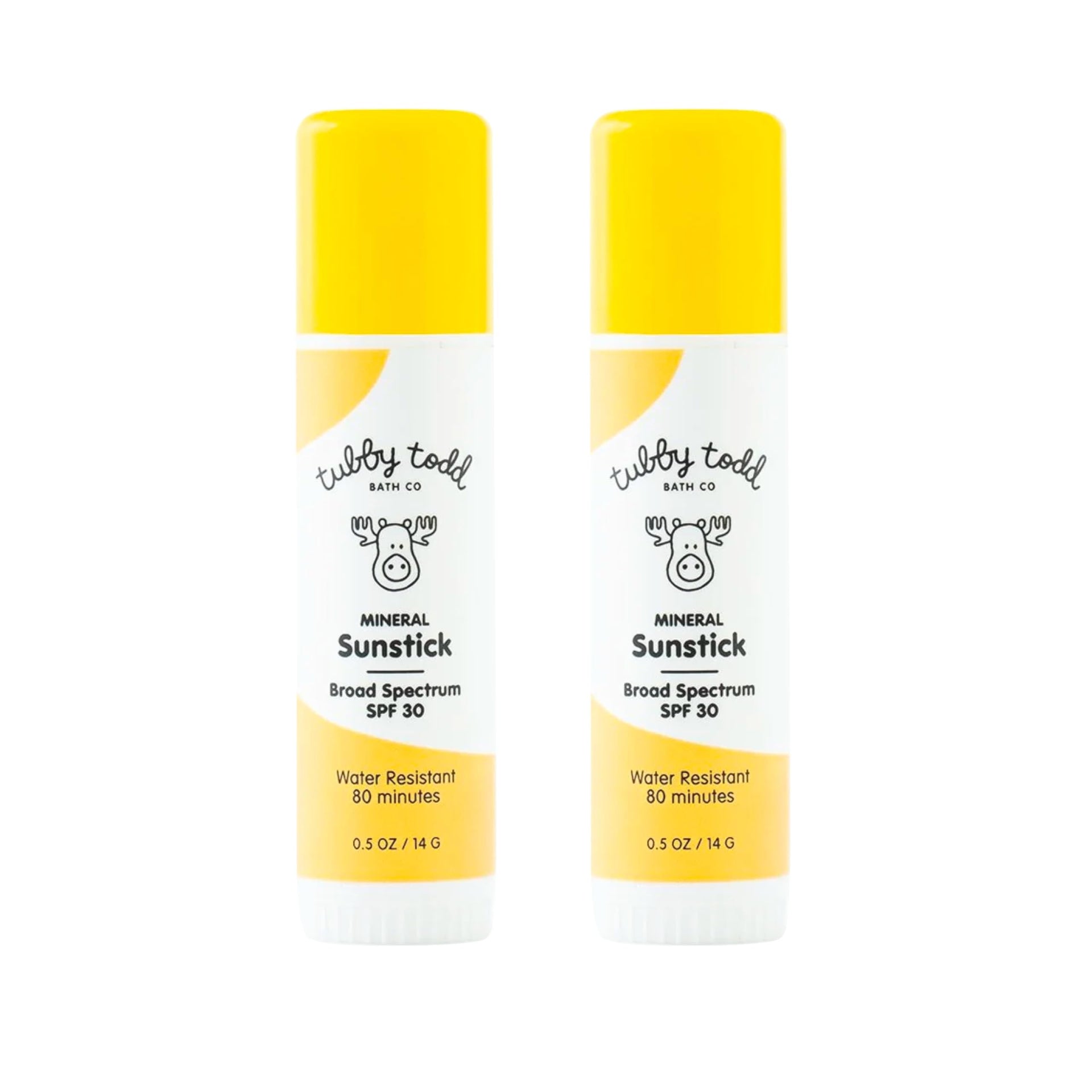 Tubby Todd Mineral Sunstick SPF 30 for Kids – Water-Resistant Broad Spectrum Sunscreen for Face & Body, Sensitive Skin Safe, 2-Pack 0.5 oz