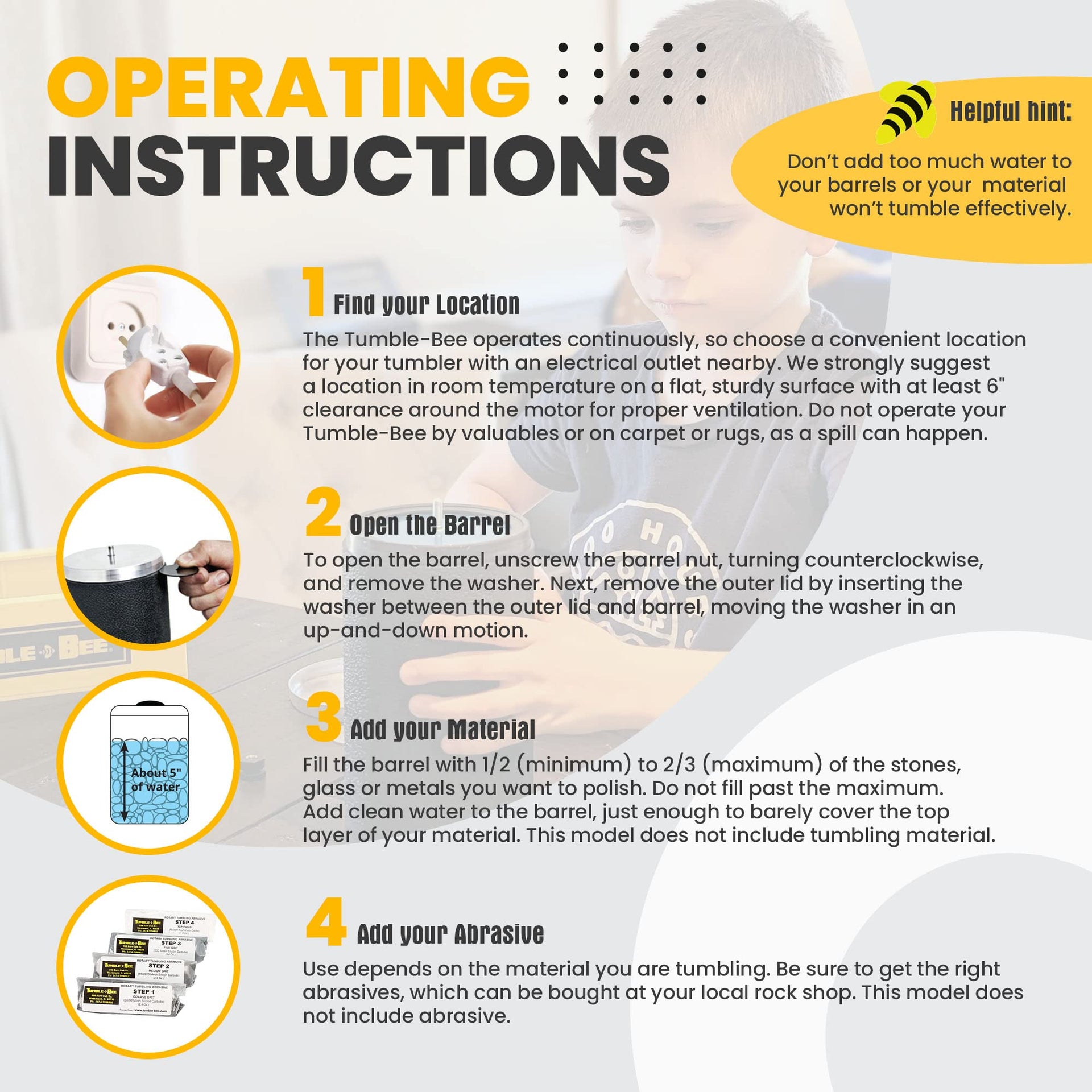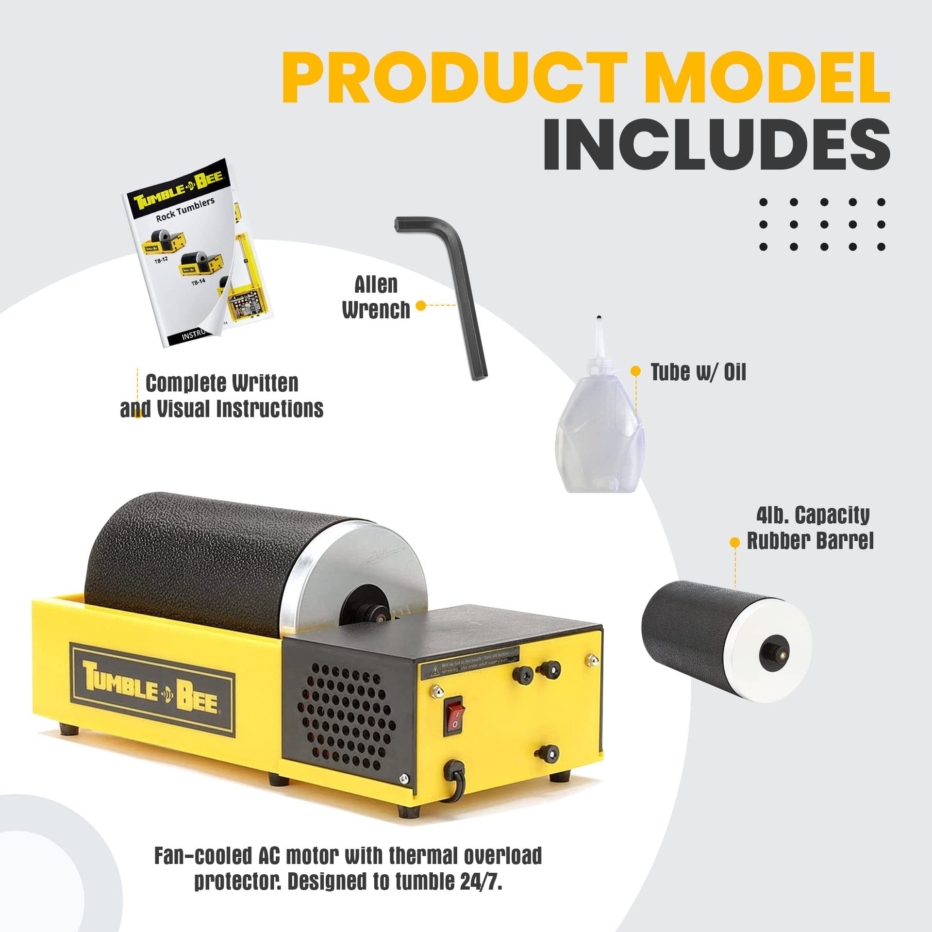 Tumble-Bee TB-14 Rock Tumbler - Large 1x4LB Rotary Polishing Machine for Stones, Rocks, Metals & Sea Glass, Adults & Kids, Hobby & Pro Use