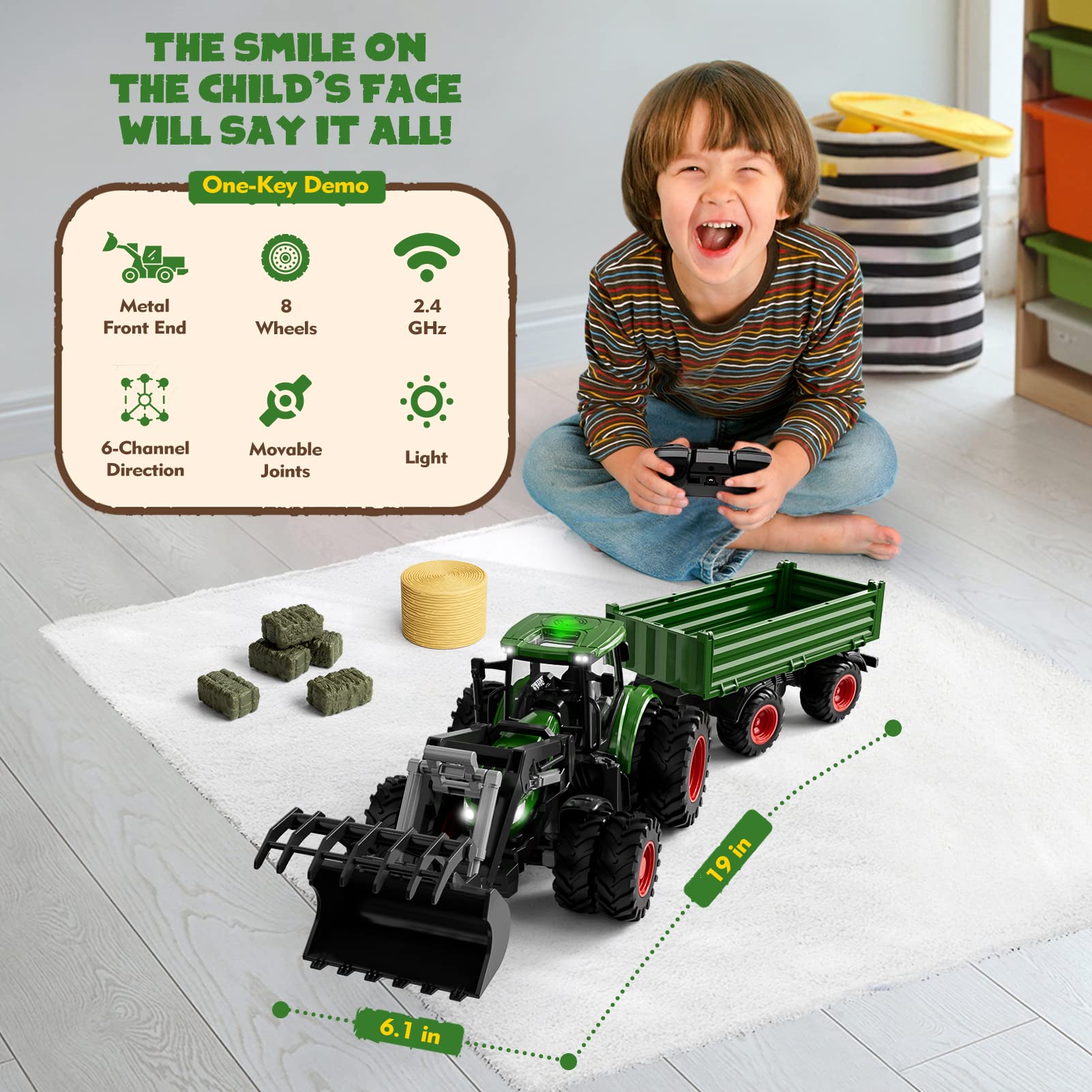 - HELP KIDS BUILD CRUCIAL SKILLS: As your little one "plows" while learning about farming and farming techniques, the abundance of accessories will spark your child's imagination and your child can create their own farm - with endless possibilities. This tractor toy set is the ideal learning remote control toy for toddlers and kids