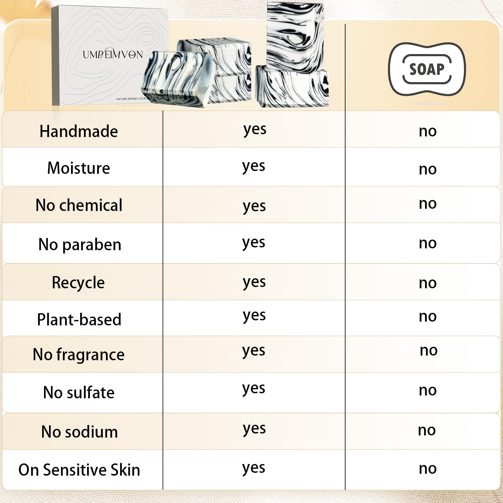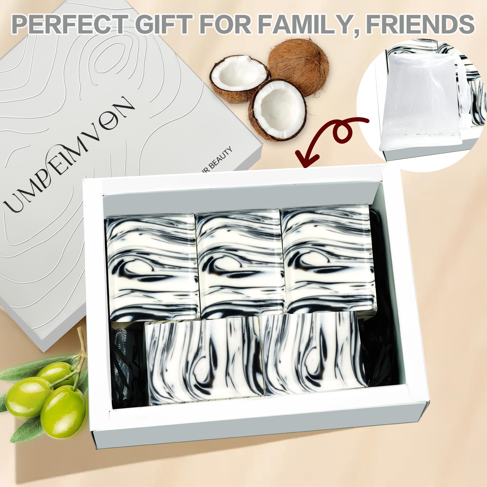 Umpeimvon 5-Pack Handmade Castile Soap Bars – Organic Olive & Coconut Oil, Cold Process, Natural Moisturizing Soap for Men & Women, 3.53 oz