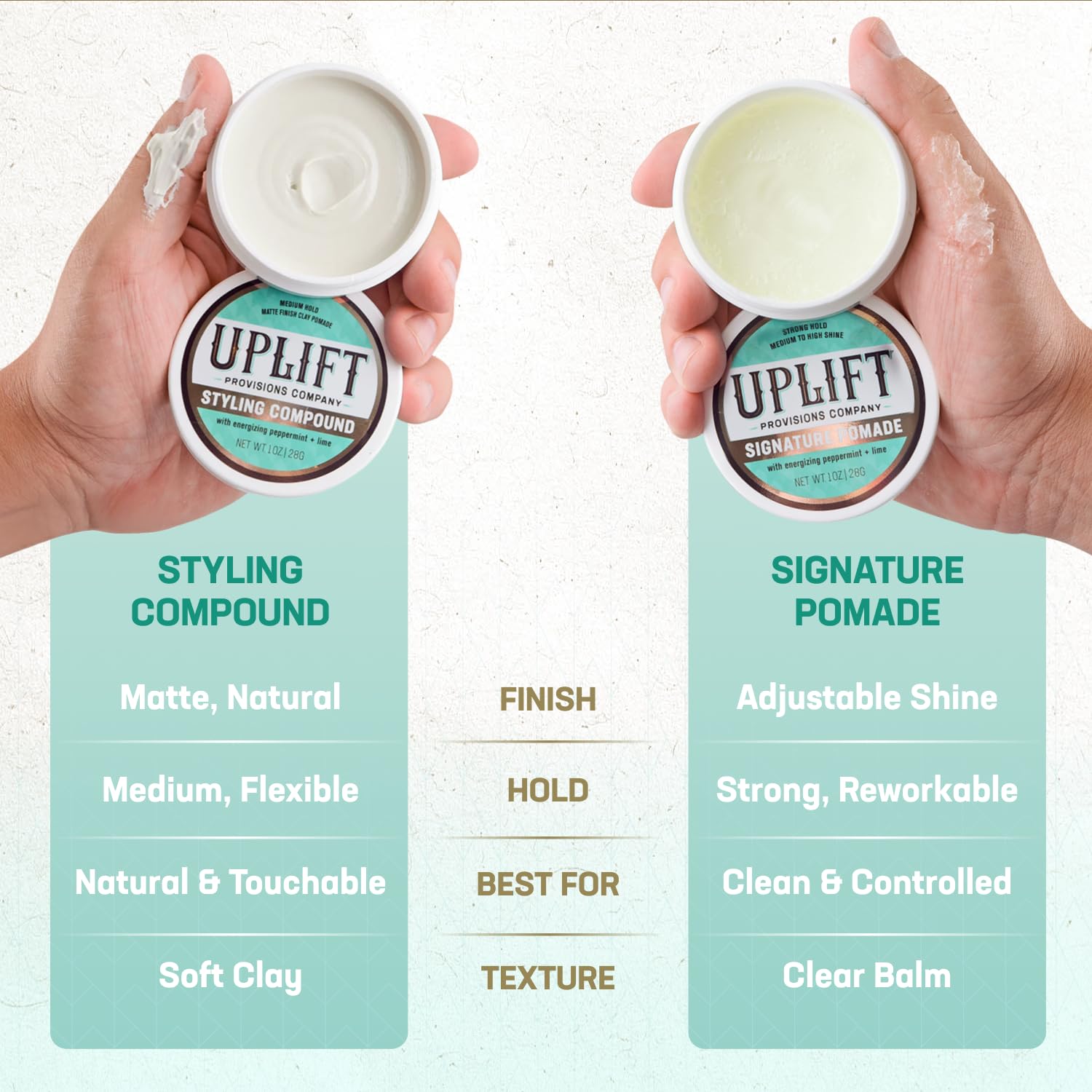 Uplift Provisions Company Styling Compound – Matte Hair Clay Pomade with Medium Hold – Natural Finish, Versatile Styling for Men & Women, 3 oz