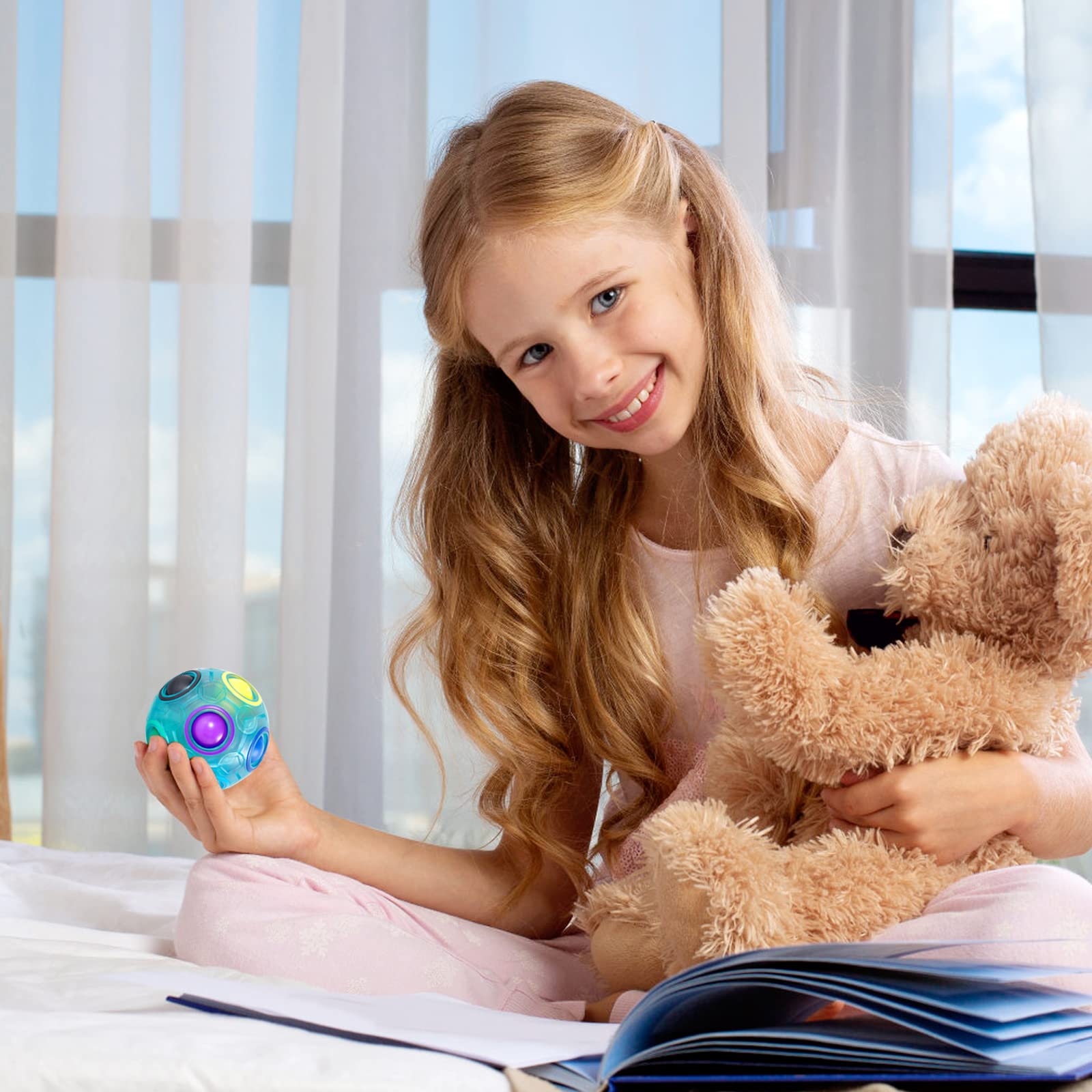 Vdealen Magic Rainbow Puzzle Ball – Fidget Brain Teaser Toy for Kids, Teens & Adults, Fun Gift for Birthday, Easter, Christmas, Blue