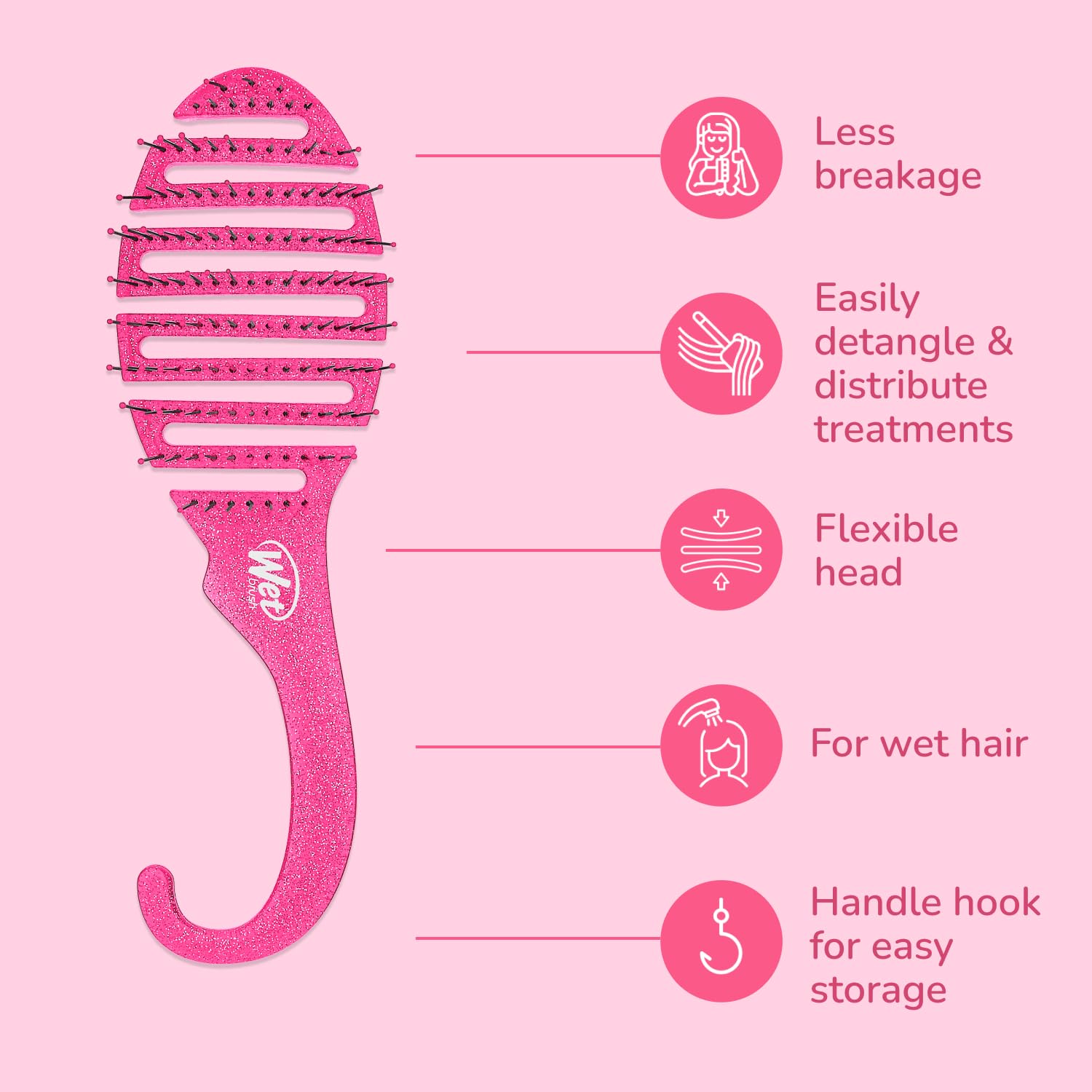 Wet Brush Shower Detangler Hair Brush - Ultra-Soft IntelliFlex Bristles Reduce Pain, Breakage & Split Ends - For Wet/Dry Hair, Men & Women, Pink Glitter