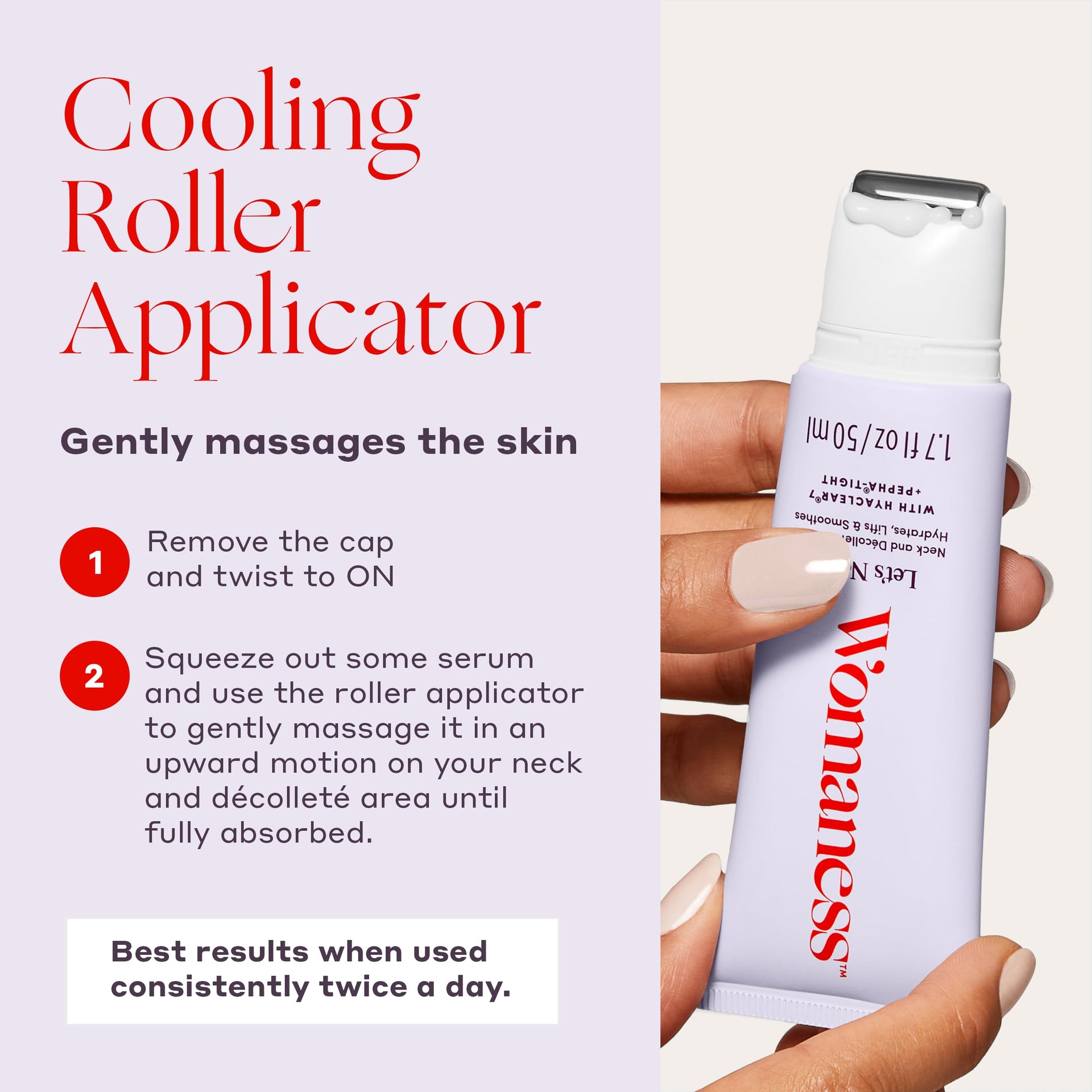 Womaness Let's Neck Firming Serum with Cooling Roller – Hydrates, Lifts & Smooths Wrinkles, Tightens Sagging Skin, 50ml