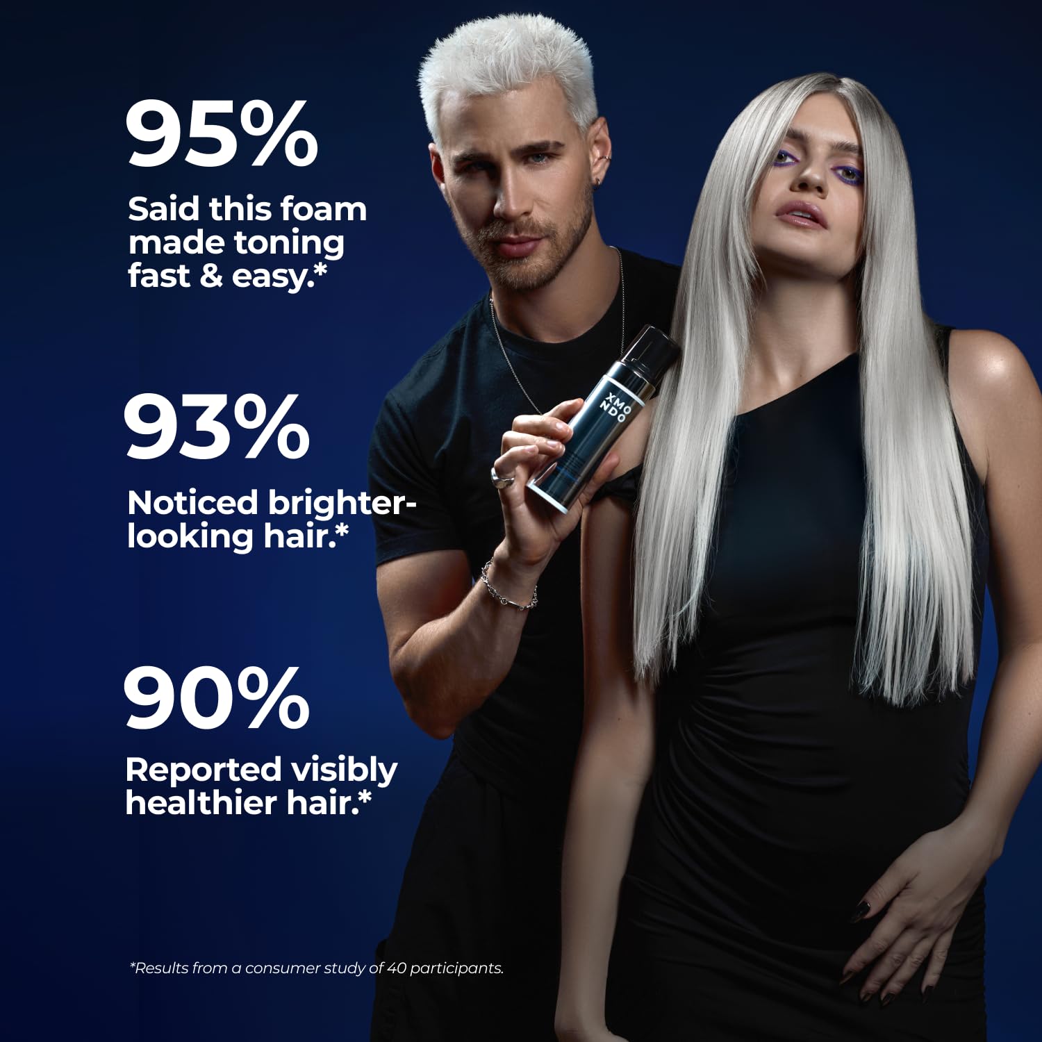 - Tone-and-Go: Leave-in foam that instantly neutralizes brassy tones keeping blonde and highlighted hair bright and vibrant between salon visits
