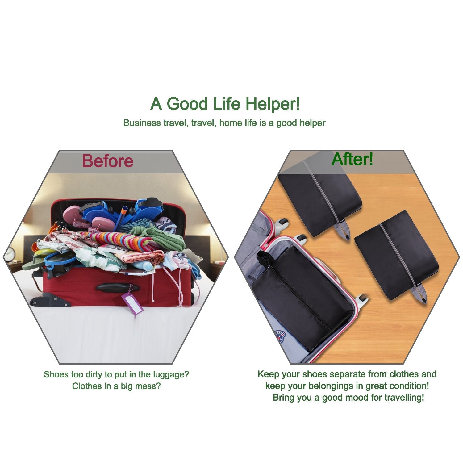 YAMIU Travel Shoe Bags Set of 4 Waterproof Nylon with Zipper for Men & Women, Black