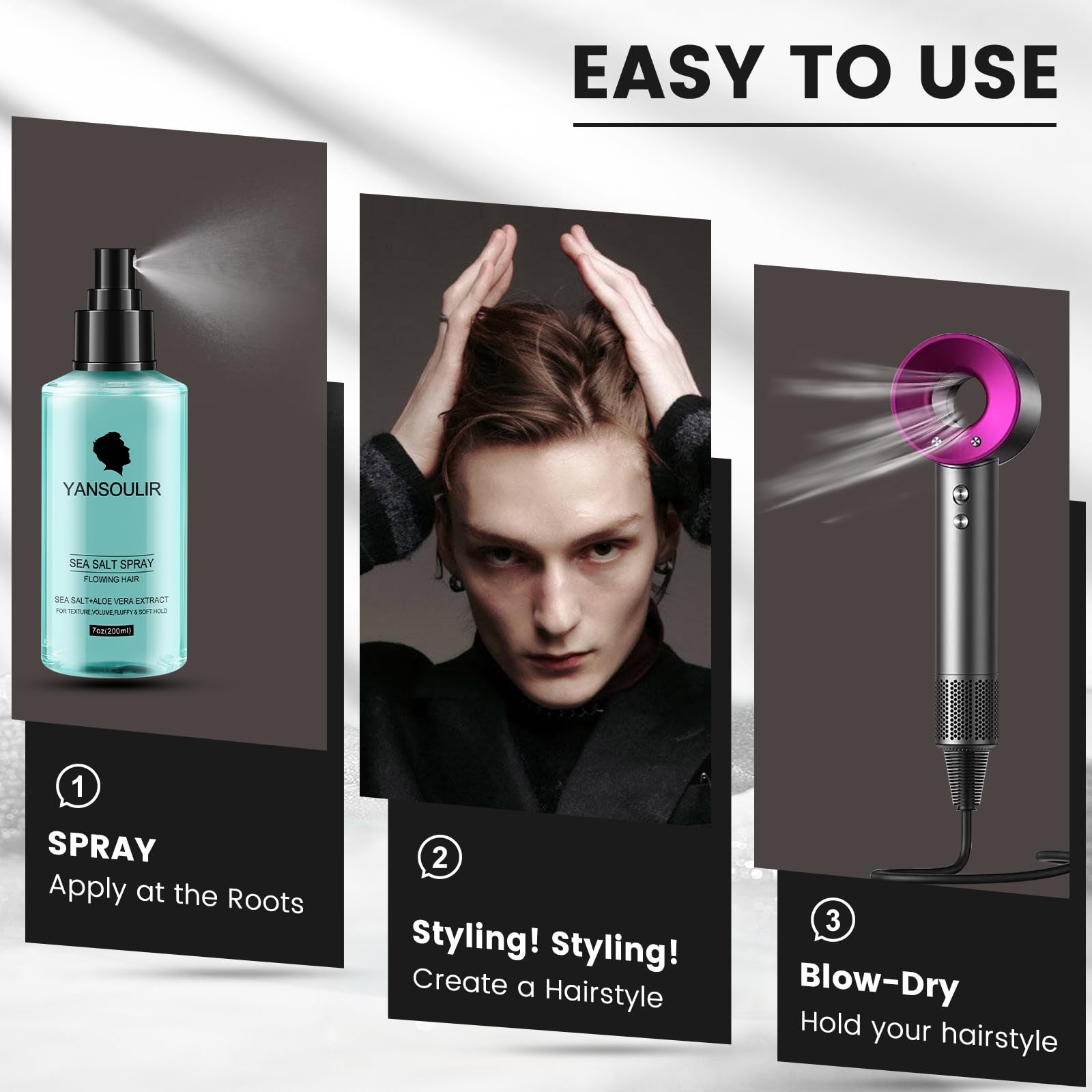 Yansoulir Men's Sea Salt Spray – Natural Hair Texturizer with Sea Salt, Kelp & Aloe Vera for Added Volume, Texture & Soft Hold – 7 oz