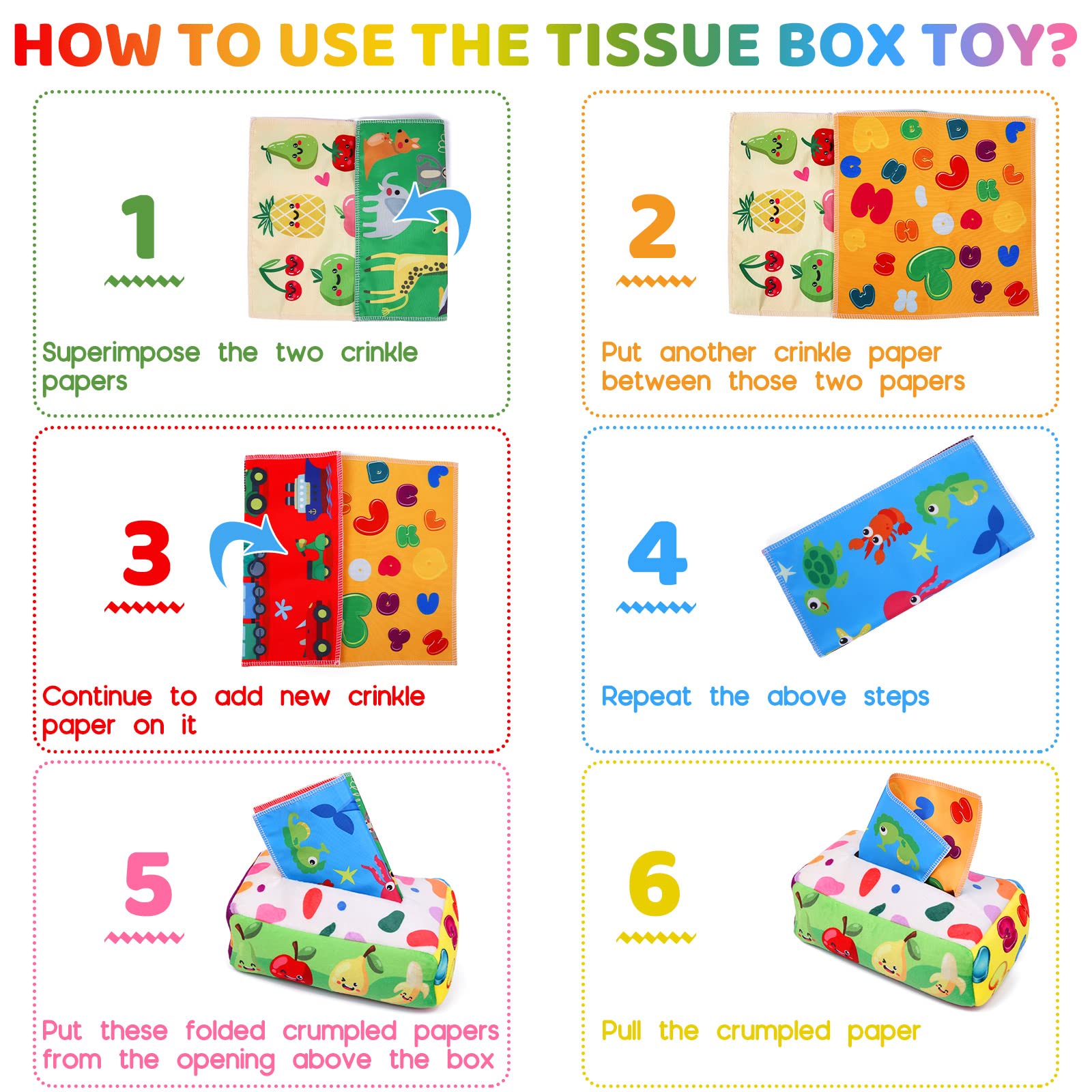 YOGINGO Montessori Baby Toy 6-12 Months – Soft Tissue Box Crinkle Sensory Toy for Infants, Boys & Girls Early Learning Gift
