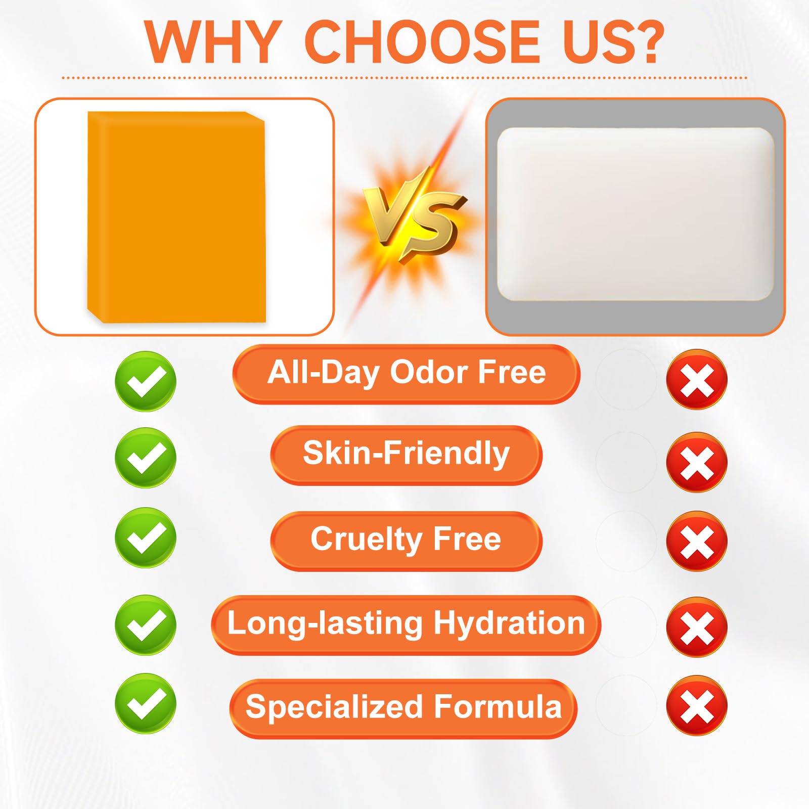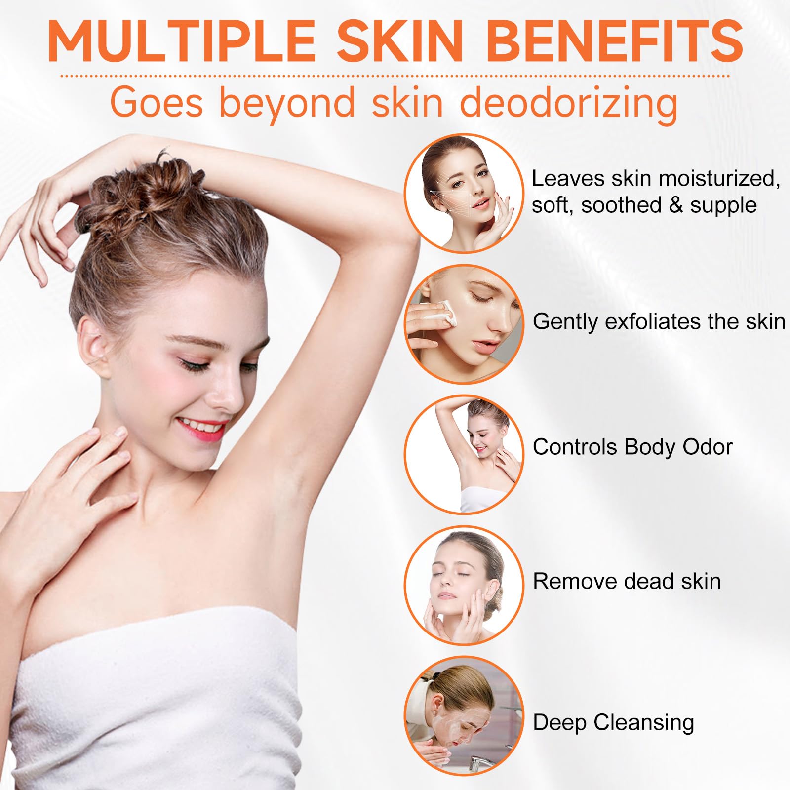 - ๐๐๐๐-๐๐๐๐ ๐๐๐๐: Our unisex deodorizing soap bar has skin-friendly ingredients that leave the skin soft, silky, and eliminates all kinds of body odors. Keeps your skin squeaky clean and freshly hydrated all day long.